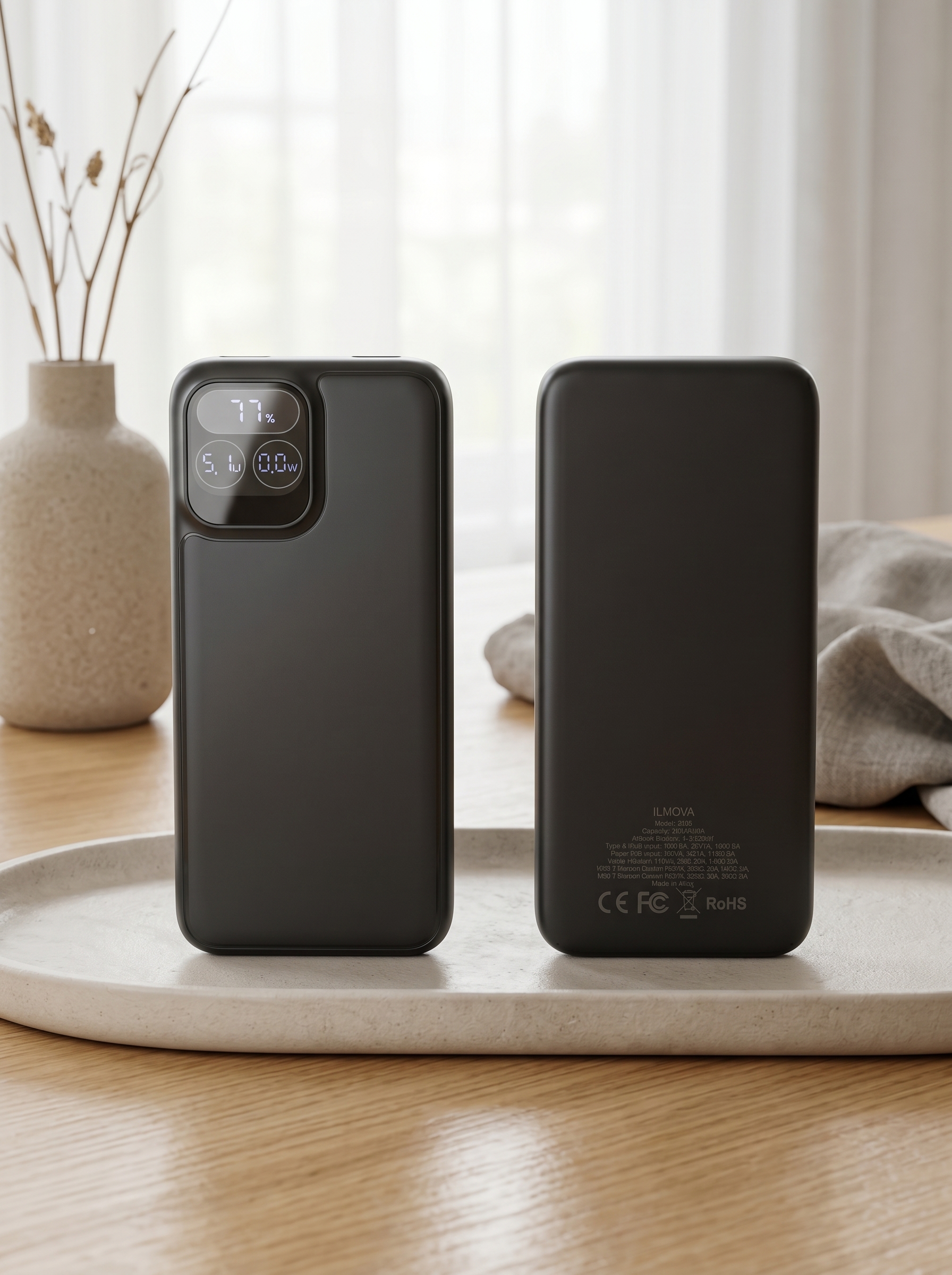 10.000 mAh Gösterge: 3. Nesil LCD Giriş: Type C DC 5V/2A Çıkış: Wireless 5W / USB DC 5V/2A Kasa Malzemesi: